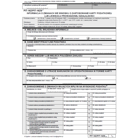 PIT-16Z / PIT-16ZS (wersja 14) Informacja o zmianach we wniosku o zastosowanie karty podatkowej lub likwidacji prowadzonej działalności