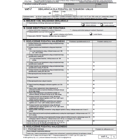 VAT-7 (16) - Deklaracja miesięczna dla podatku od towarów i usług