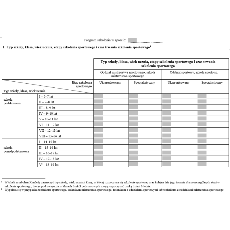 stanowi załącznik do obwieszczenia Ministra Edukacji i Nauki z dnia 17 listopada 2020 r. w sprawie ogłoszenia jednolitego tekstu rozporządzenia Ministra Edukacji Narodowej w sprawie oddziałów i szkół sportowych oraz oddziałów i szkół mistrzostwa sportowego