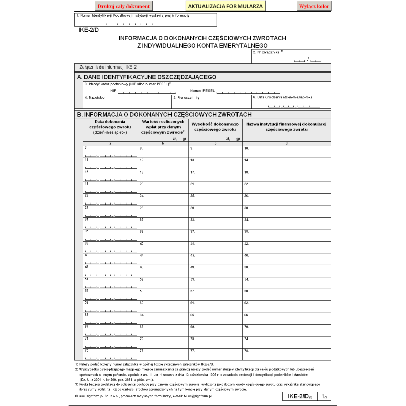 Informacja o dokonanych częściowych zwrotach z indywidualnego konta emerytalnego (wersja 2) - Dz.U. 2011 Nr 239, poz. 1427 (załącznik 5)
