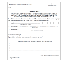 Format: A2 | Wymóg: Sporządzenie w ciągu 1 dnia | Dane: Sprawca, pojazd, czyn, kwalifikacja prawna