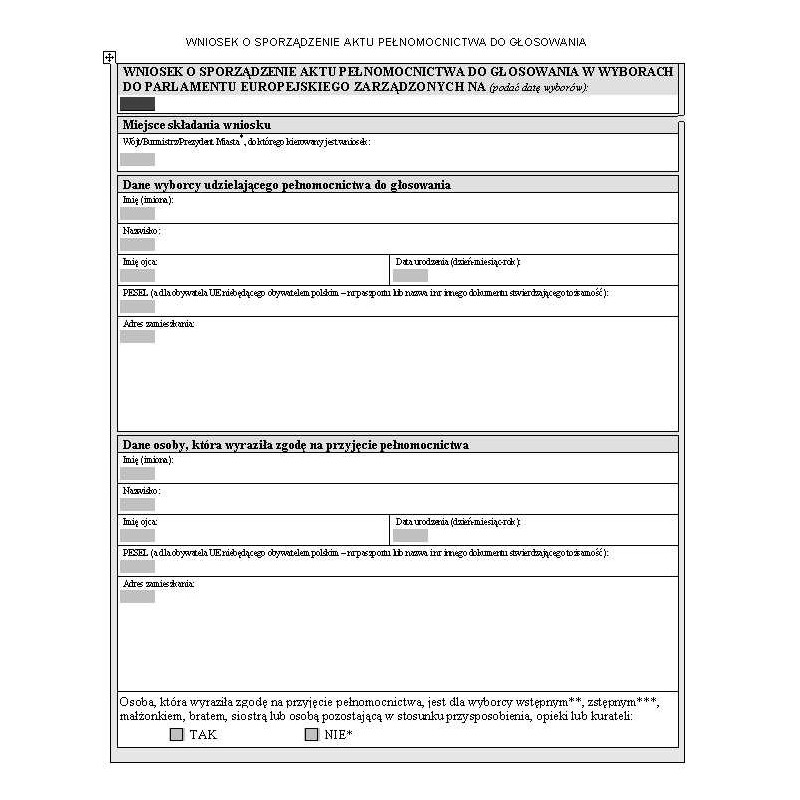 Wniosek o sporządzenie aktu pełnomocnictwa do głosowania w wyborach do Parlamentu Europejskiego
